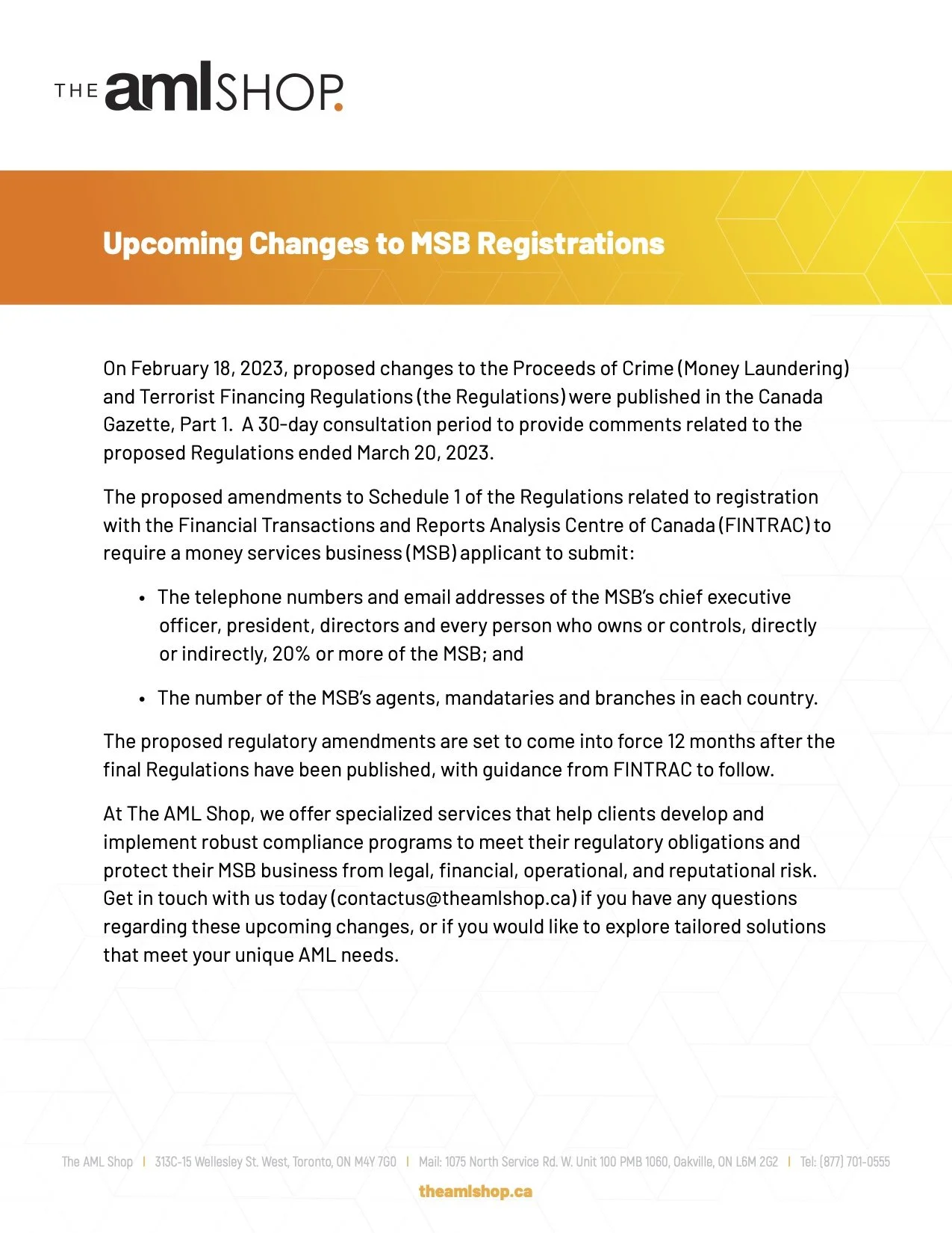 Monika Cywinska April 13, 2023 Important Announcement on Upcoming Changes to MSB Registrations Monika Cywinska April 13, 2023